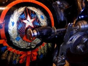 Of course, the machines were given a new décor adapted to the Soviet symbolic language: hammer, sickle, star and agricultural symbols. The emblem on the cover was also only slightly adapted from the original Singer design.